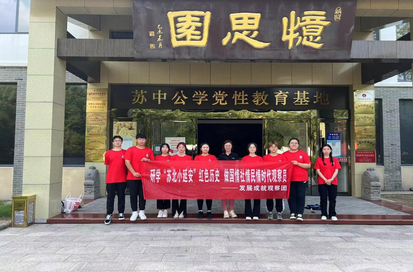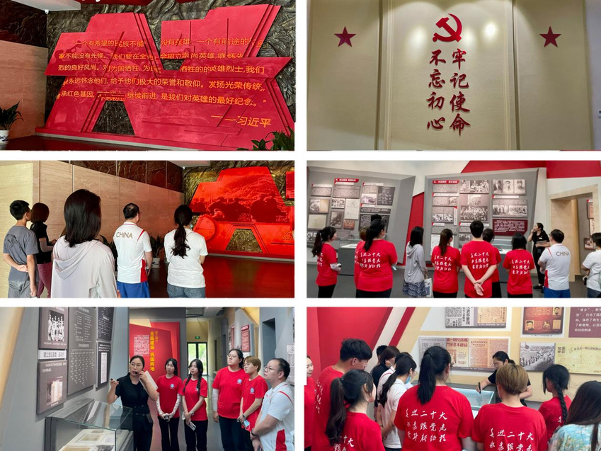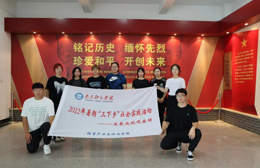 为积极响应团中央《关于开展2022年全国大中专学生志愿者暑期文化科技卫生“三下乡”社会实践活动的通知》相关要求,用好红色资源,更好发挥革命英烈的引领作用,体育产业与休闲学院“苏北小延安”发展成就观察团,于8月1日来到扬州市宝应县进行“追逐红色记忆,传承先辈血脉”的暑期“三下乡”社会实践活动。宝应,素有光荣革命传统,是一方英雄的沃土。在宝应的这次实践活动中,成员们在“宝应县革命烈士陵园”重温宝应历史,缅怀革命先烈、在“周恩来少年读书处”中体味水巷情深,感受浓浓乡情、在“红枫园——苏中革命历史纪念馆”和“苏中公学纪念馆”追逐红色记忆,探寻革命精神。