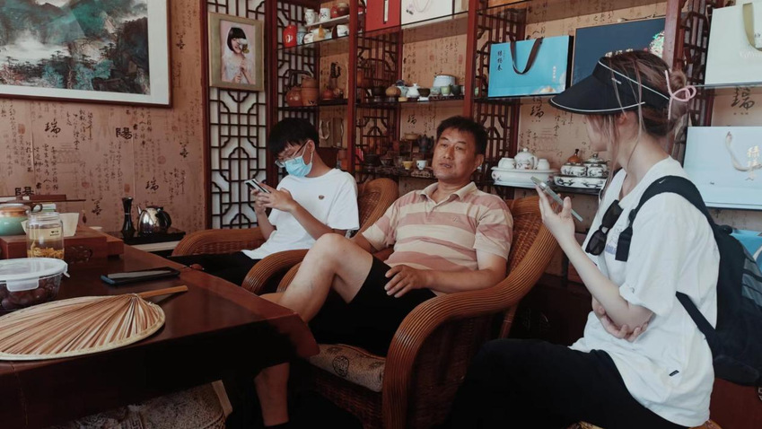 “待到春风二三月,一盏茗茶田园间。”7月2日上午,我们走访了山北村大大小小的茶厂,并在陶园茗与一位茶户进行了深入的交谈。他告诉我们绿杨春茶是扬州市仪征市山北村的特产茶叶,远近闻名。在茶户饿热情招待下,我们品尝了绿杨春茶,捧着精美的陶制茶杯,望向窗外的大片茶园,再看看杯里形似细柳的绿杨春,心情不禁舒畅起来。品茗与交谈间,茶香四溢,我们对山北村的绿杨春也有了更深入的体会。
