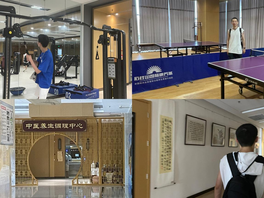 午饭过后,我们走访了城内的怡乐颐养中心、健康护理中心、中医养老中心以及石柱山金陵大酒店,各功能区的设备齐全先进,装修风格端庄儒雅又时尚现代化,有老人在书画室下棋喝茶,也有年轻人在健身室里挥汗如雨。体验了宜居、宜游、宜养的生态园区一站式服务后,我们来到负责人的办公室,听他讲述石柱山康养城的发展与展望,我们了解到石柱山国际康养城在为社会提供康养服务的同时,吸纳当地村民,使村民们通过培训,从事基础的康养服务工作。既满足了庞大服务综合体的人工需求,也解决了村民就业难的问题,增加村民收入,提升了山北村村民的生活幸福指数。而石柱山康养城的成功运营,也反哺着山北村,为山北村的乡村振兴出一份力。