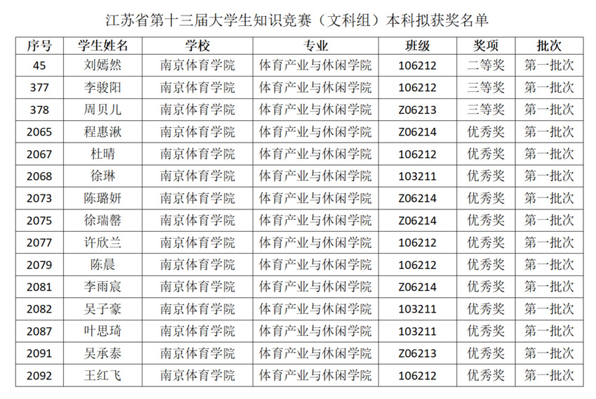 在本次知识竞赛中,体育产业与休闲学院学子成绩斐然,共斩获15个奖项,其中刘嫣然荣获江苏省二等奖,李骏阳、周贝儿荣获江苏省三等奖,程惠湫等12名同学荣获优秀奖。本届大学生知识竞赛依托教育信息技术手段,探索创新线上线下混合式的考试模式,首次采取无纸化考试方式,由考生在线上或线下考场,在本人手机上完成答题。受新冠疫情影响,与历届相比,此届竞赛也是组织跨度最大的一次。我院高度重视此项工作,自收到竞赛文件起,积极组织学生报名参赛。赛前组织考生线上模拟答题,并认真落实考务安排,严格把关竞赛各环节,保证高质量完成各项工作,考试秩序井然,考风考纪良好。
