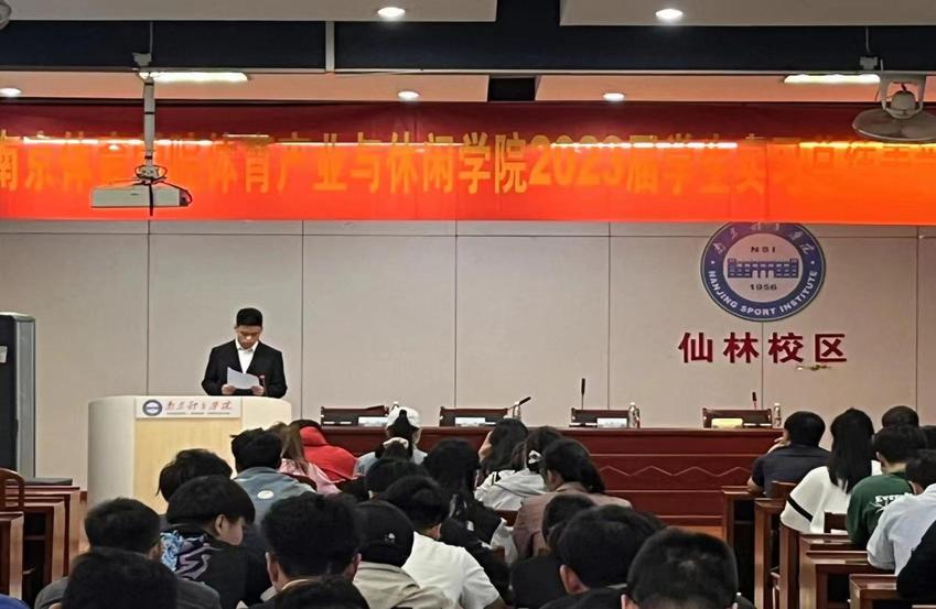 5月5日,体育产业与休闲学院在仙林校区大学生活动中心举行2023届学生实习总结表彰大会,对在实习期间表现优异的指导教师、学生进行表彰。体育产业与休闲学院党总支书记王进、院长王龙飞、党总支副书记陈志,副院长柏景岚,各系正副主任、指导教师以及2023届全体学生参加会议。本次大会由柏景岚主持。