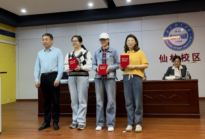 体育产业与休闲学院党总支副书记为院级优秀实习生颁奖