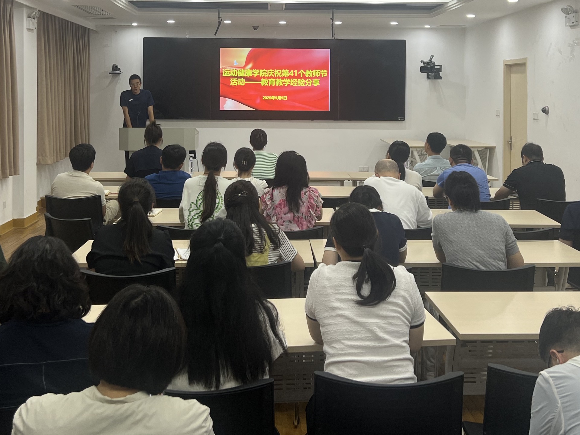 在第41个教师节来临之际,为进一步弘扬尊师重教、崇智尚学的优良传统,展示学院教师立德树人、自信自强的精神风貌,9月9日下午,运动健康学院庆祝第41个教师节活动暨教育教学经验分享会在图书馆第二报告厅举行。活动由副书记刘莉主持。