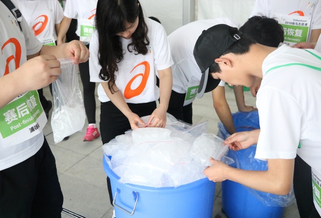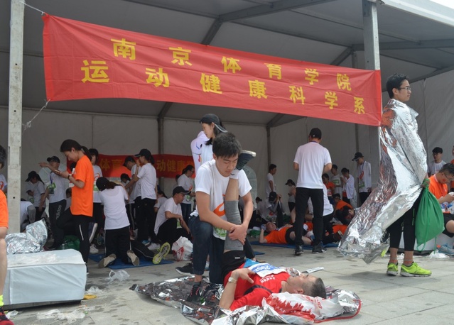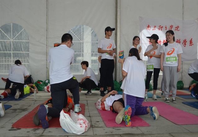 此次的志愿服务是我校第四次与“扬马”赛事组委合作,一同致力于为广大参赛选手提供精细化的特色拉伸操、拉伸、冰敷、按摩等专业赛后恢复服务。抵达“扬马”半程终点后,志愿者们开始了各项准备工作。在参赛选手陆续抵达后,志愿者们积极投入到各自的岗位中去。在冰敷、拉伸和按摩的现场,选手们有序地排起了长队,等候同学们提供专业的赛后恢复服务。比赛当天扬州下起了小雨,但淅淅沥沥的春雨并未浇灭志愿者们的热情。在三个半小时的服务中,大家分工明确、各司其职,用最真诚的微笑和最专业的服务为来自各地的选手们提供了细心周到的服务。